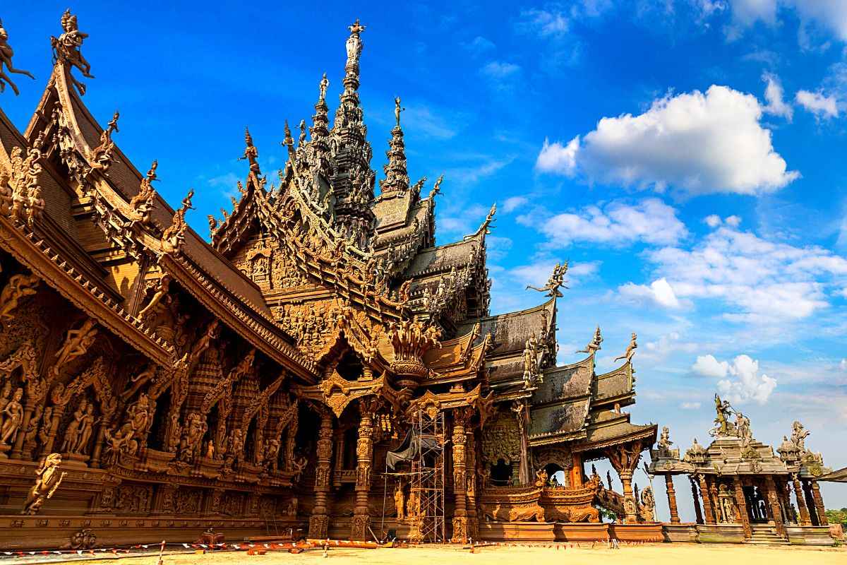 The 105-meter gigantic building made up of teak wood is a piece of art because each part made itself is a beautiful art of carving. It is the world’s largest woodcarving building.